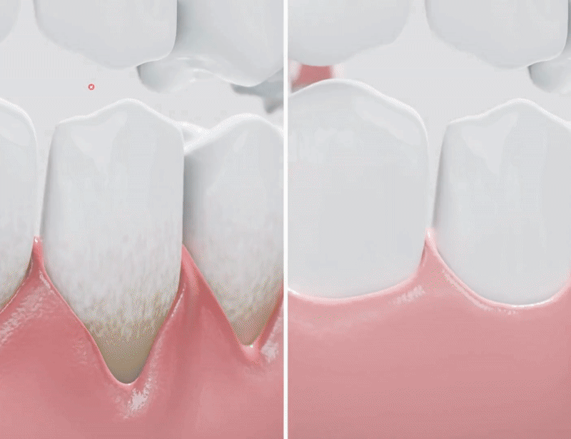 1. Hónap után: Egészségesebb, erősebb, feszesebb fogíny, érezhetően és láthatóan csökken a gyulladás mértéke és megszűnik a fogínyvérzés. Láthatóan fehérebb fogak.